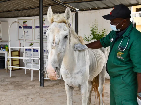 Boubacar said, ‘This is my second time in the SPANA stables. The first time they helped us by giving me food for my horse. Now I have come because my animal is having eating problems. The vets helped Balla and gave me good advice. Thank you for your help.’