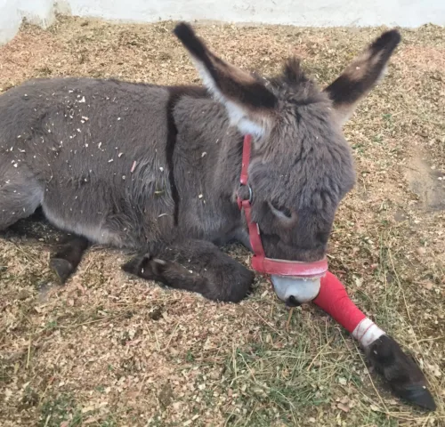Disoriented, Jamil struggled to remain upright as he felt the piercing pain of the huge wound. Passers-by turned their eyes away in horror. It was shocking to see such a serious injury and the young donkey in obvious pain.