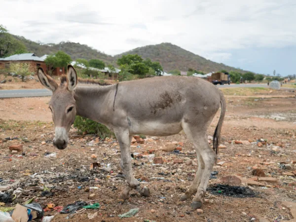 Fortunately, no bones were broken, so our vets cleaned the wound and gave Jopa anti-inflammatories to reduce the swelling and ease his pain. The vets also started the poor donkey on a course of penicillin to stop the spread of infection. Mathew was advised to restrict Jopa’s movement until his leg fully healed. The vets also advised Mathew about the dangers of Jopa free roaming without a light-reflecting collar to help make him visible to traffic at night.