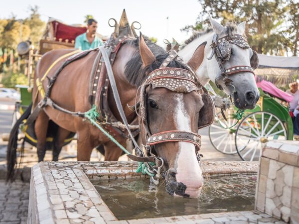 • In Morocco, we built ten drinking fountains in Marrakech so that thirsty caleche horses can access fresh water when working in the heat. The fountains are regularly visited by a SPANA water cart to ensure they are refilled, cleaned and maintained.