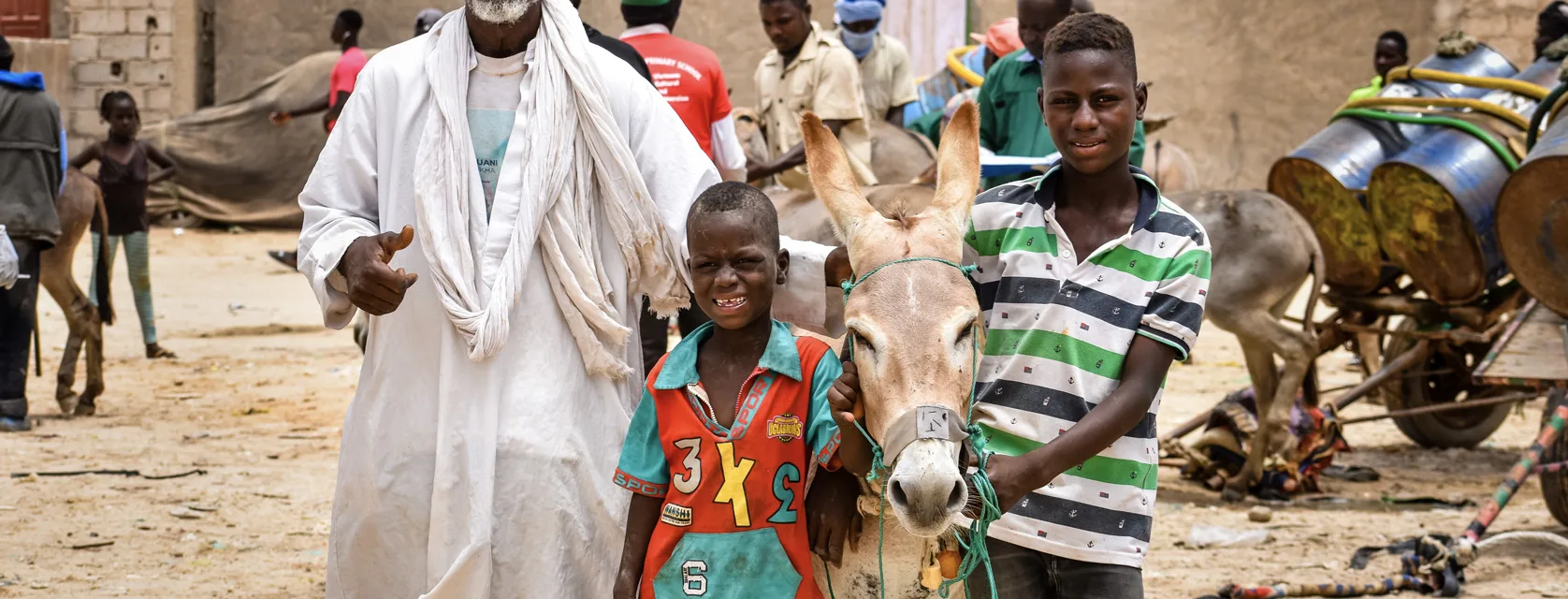 Iasfar the donkey works on the sandy streets of Nouakchott, Mauritania, transporting water and construction materials. Even in the 40 degree heat of summer, Iasfar’s 61-year-old owner Yehmi works 12 hours per day – the mornings with Iasfar, and the afternoons with his other donkey – to earn an income to support his young family.
