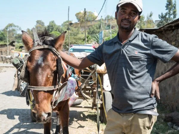 Tamanyi, meaning ‘loyal’, has an important job. Every day, the 12-year-old horse transports people around the central Ethiopian town of Bishoftu, helping them get to school, hospital appointments and the local market to buy essential supplies. His hard work also enables his owner, Dibaba, to support his loved ones.