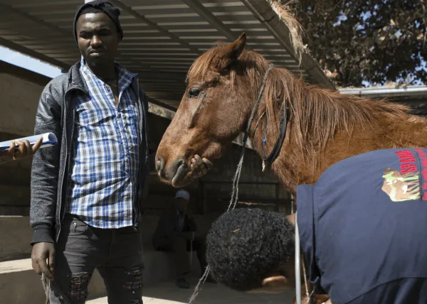 An owner seeks treatment for his horse at SPANA's veterinary centre in Ethiopia