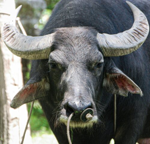 Water buffalo are large bovines known for their distinctive curved horns and love of water. First domesticated more than 5,000 years ago in Southeast Asia, they’ve been used by farmers for tasks like ploughing fields and pulling carts ever since. There are two main types of water buffalo: river buffalo, which are larger and mainly raised for their milk (famous for products like mozzarella cheese), and swamp buffalo, which are smaller, sturdier animals used for heavy labour, especially in rice fields.